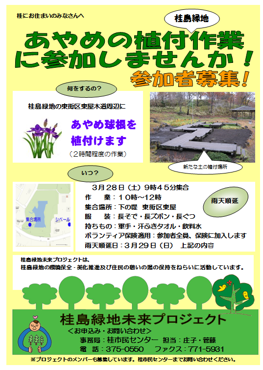 桂市民センター 桂島緑地未来プロジェクト担当迄 TEL 375-0550