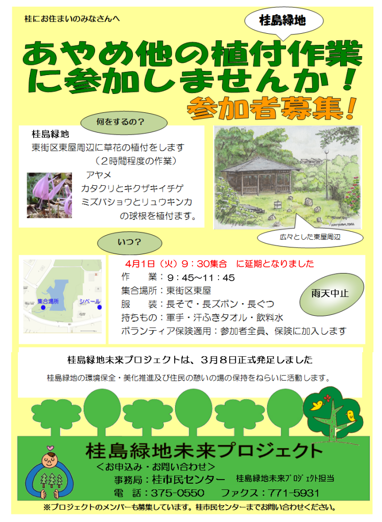 桂市民センター 桂島緑地未来プロジェクト担当迄 TEL 375-0550 |