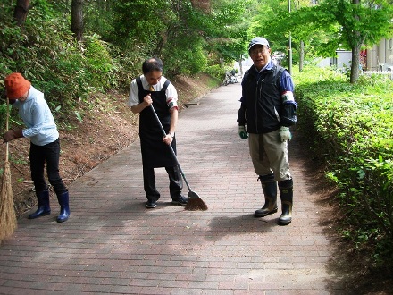 第7回の定期活動を参加者9名(男性6名、女性3名)、作業内容は、6月末に、市の草刈が入るという事で,、ダイシン下の遊歩道のみ、コンビ二脇の通路の躑躅の刈り込み、若い成田さんが、頑張って綺麗にしてくれました。通路の目地草とり、新しい階段下の遊歩道の草刈と、だいぶ 綺麗になりました。