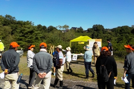 9:10-10:30 秋晴れの下、地域住民30名、将監中生徒18名、合計48名の参加者で