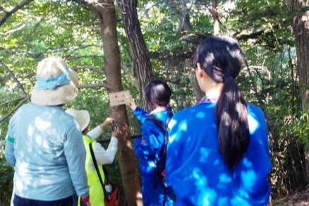 B将監中生徒を中心に樹木プレートの設置作業を実施した。
