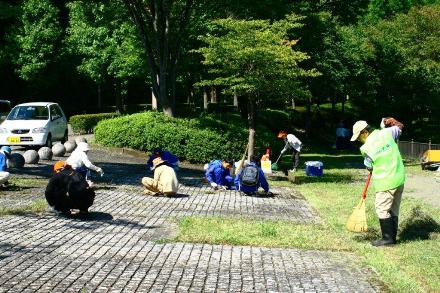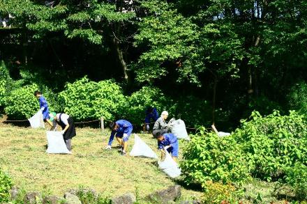 | 9/1事前作業、9/3開催当日に延べ55名の参加者にて、「下の堤東屋周辺を中心とした除草・清掃活動」を実施し、広々とした美しい景観を保つことができました。当日は、地域住民の方々、将監中学校の生徒、パークタウンサービス、荘内銀行、泉区桂市民センターと多くの団体の参加を得て実施しました。 |