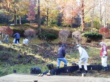 第16回の定期活動を参加者11名(男性7名、女性4名)、作業内容は、東屋周辺の刈り草清掃とアヤメ園土留め作業を実施した。アヤメ園では、湧水が入り込んだり雨による土壌の流失がありその生育状況が悪くなり始めている。今回の土留め作業と次年度の土壌追加作業によりアヤメの生育が戻ることを期待したい。