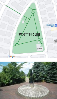 入り口で石や三角のオブジェが迎えてくれる、 三角屋根のあずまやが印象的な公園です。 桂3丁目集会所が併設されております。 (総面積 0.44ha) 園内には、遊具の設備もあります。 |